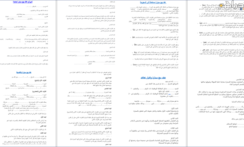 4 نموذج عقد بيع سيارة واقرار استلام فى السعودية للتنزيل مجانا
