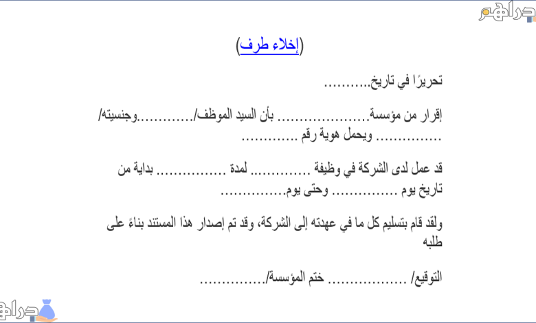 - تحميل نموذج خطاب اخلاء طرف بصيغة وورد: اضغط هنا