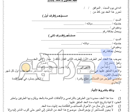 3 نموذج صيغة عقد ايجار محل جاهز للطباعة مصر PDF و Word و Doc للتنزيل مجانا