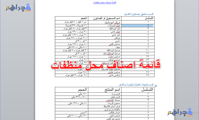 قائمة اصناف محل منظفات pdf؛ دليلك لجميع بضائع ومنتجات محل المنظفات